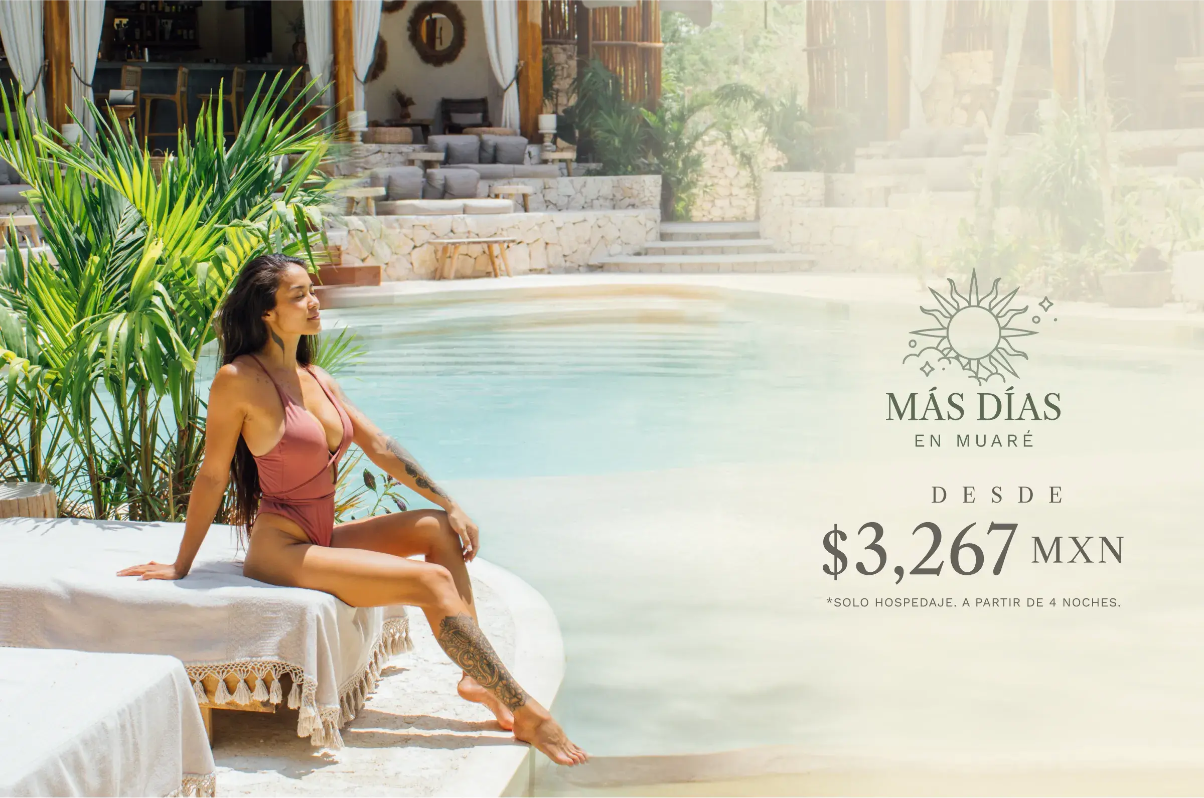 Deja que el ritmo de la selva y la calma del Caribe se conviertan en tu compañía. Con nuestra promoción Más Días en Muaré, cada amanecer se transforma en un momento de conexión, descanso y placer sin prisas. Relájate en tu villa privada, despierta con el canto de la naturaleza y disfruta de la libertad de vivir cada instante a tu propio ritmo.